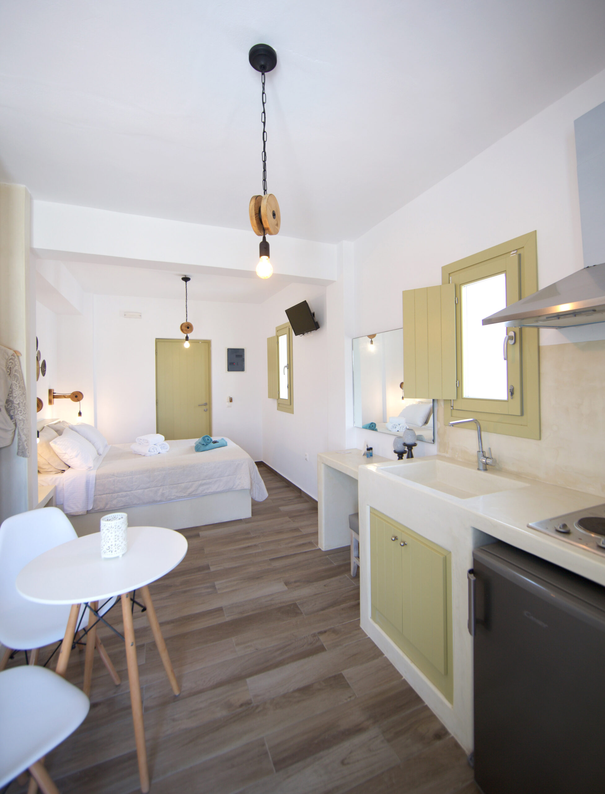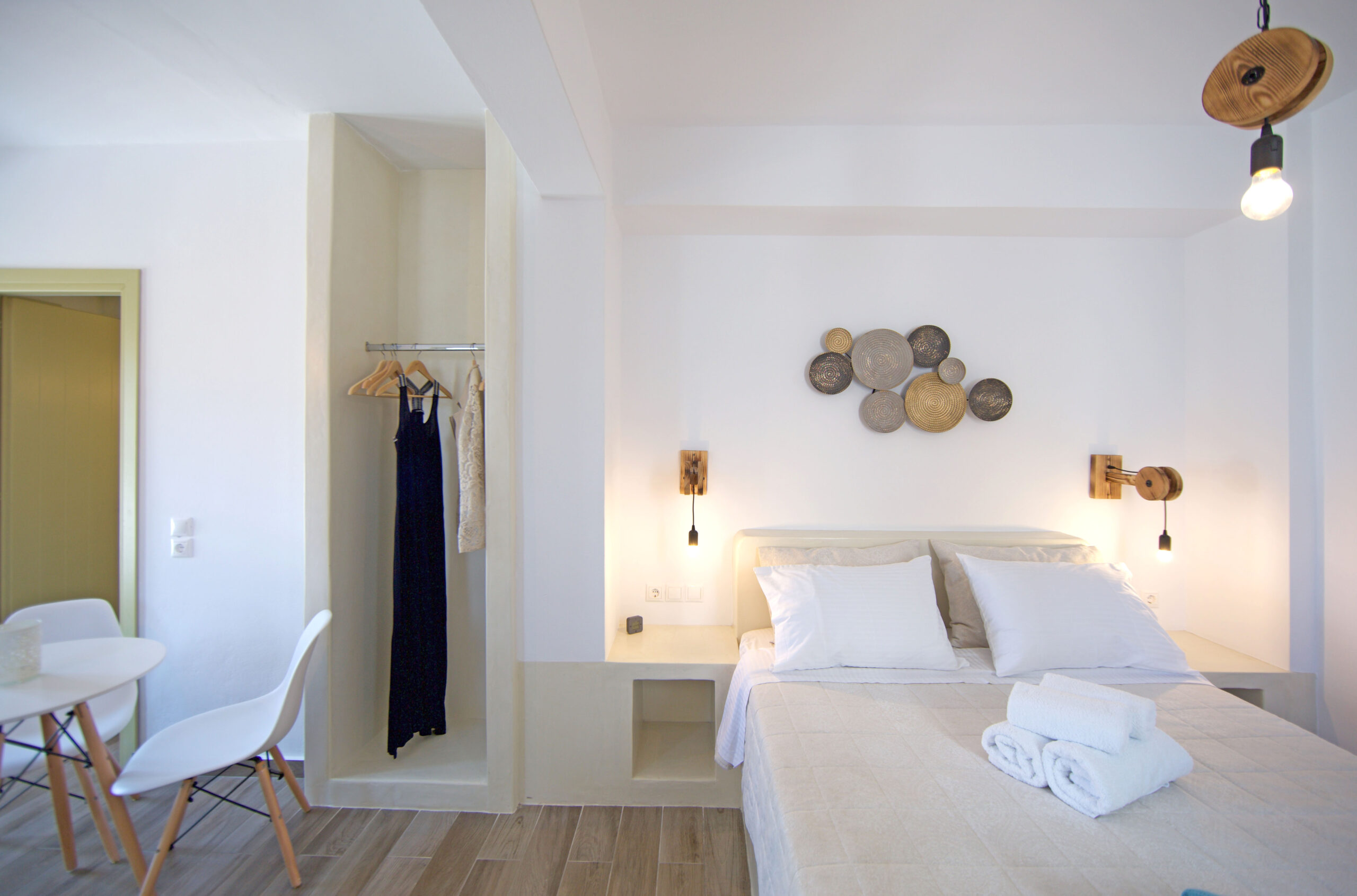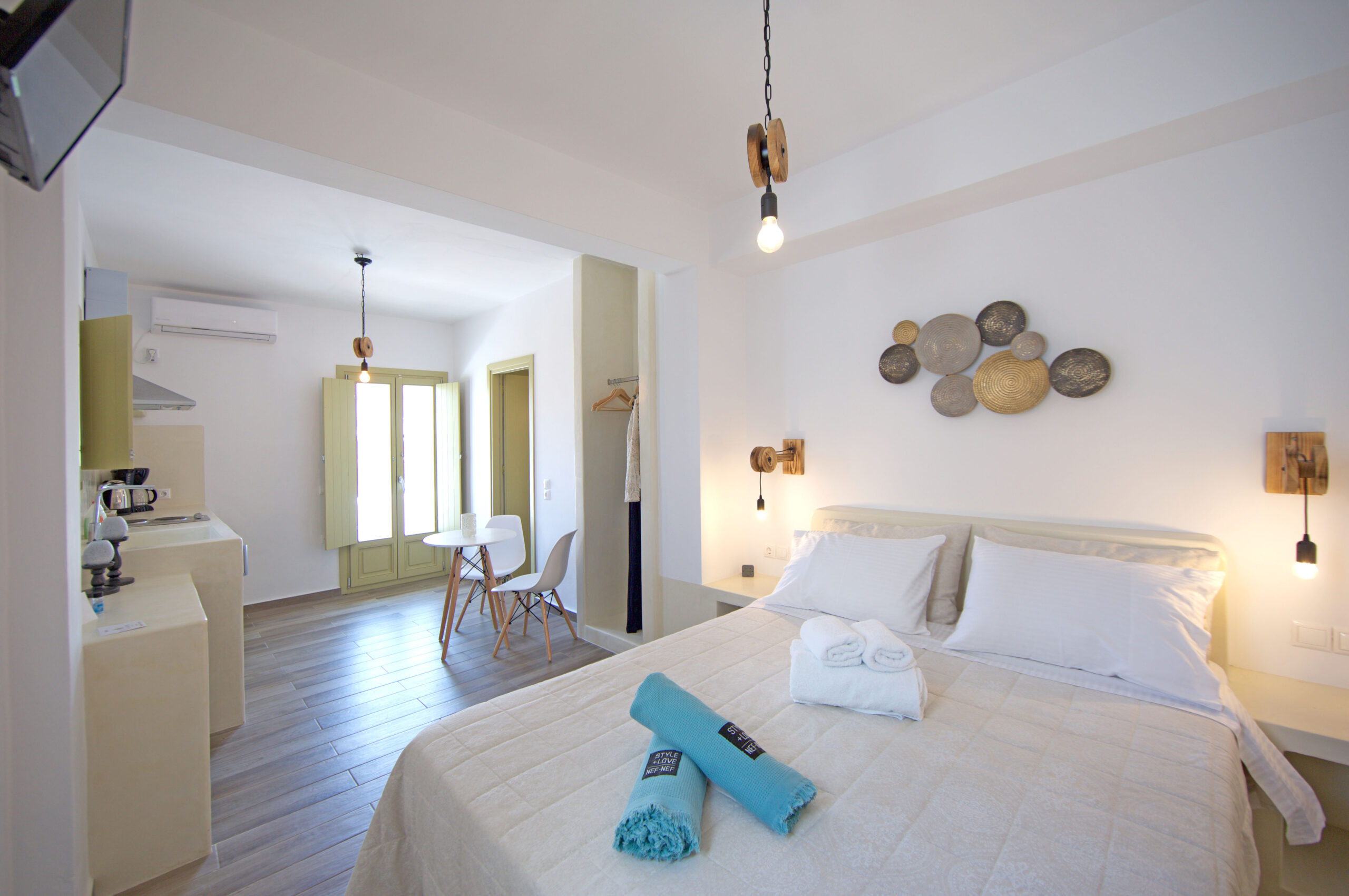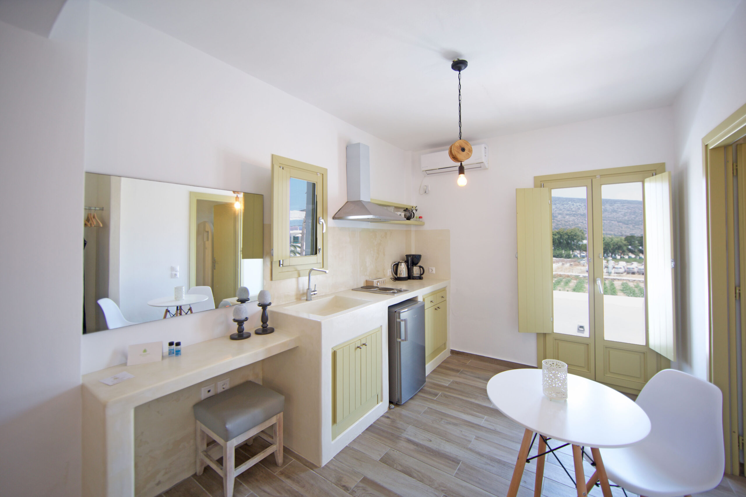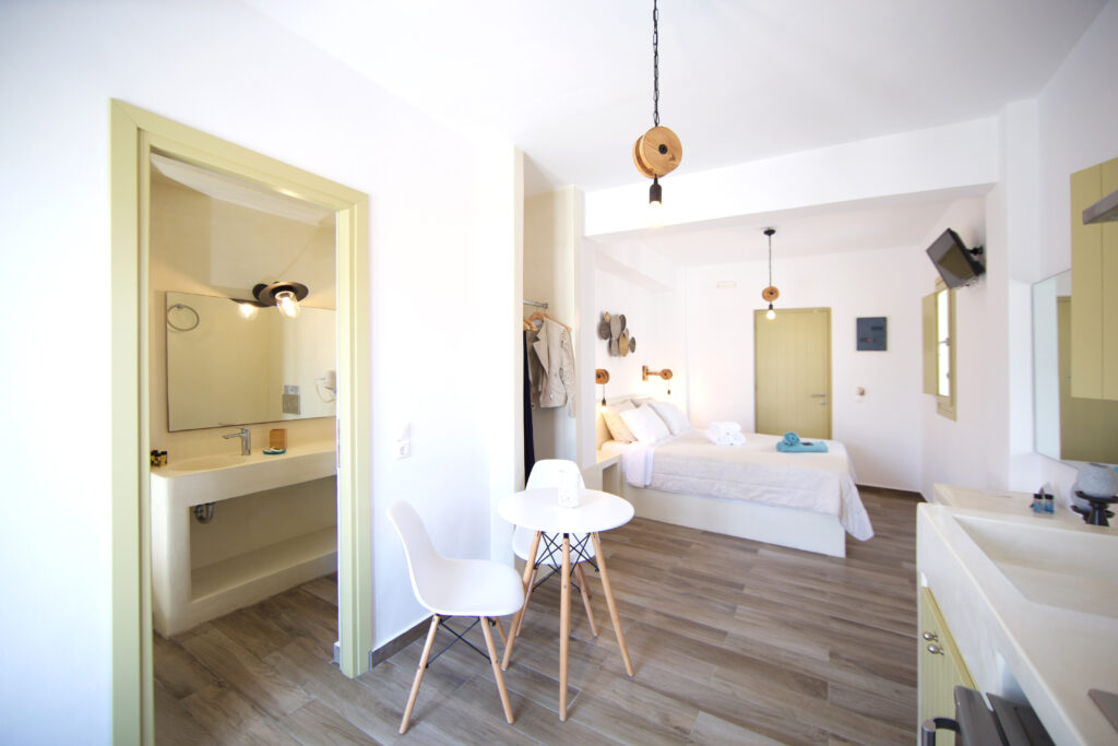 We provide Sea View (in some of our studios), Air conditioning, Slippers, Flat-screen Smart TV, Daily maid service, Terrace with chairs and table, Coffee Machine, Beach towels, Wi-Fi, Safe and Bath amenities.