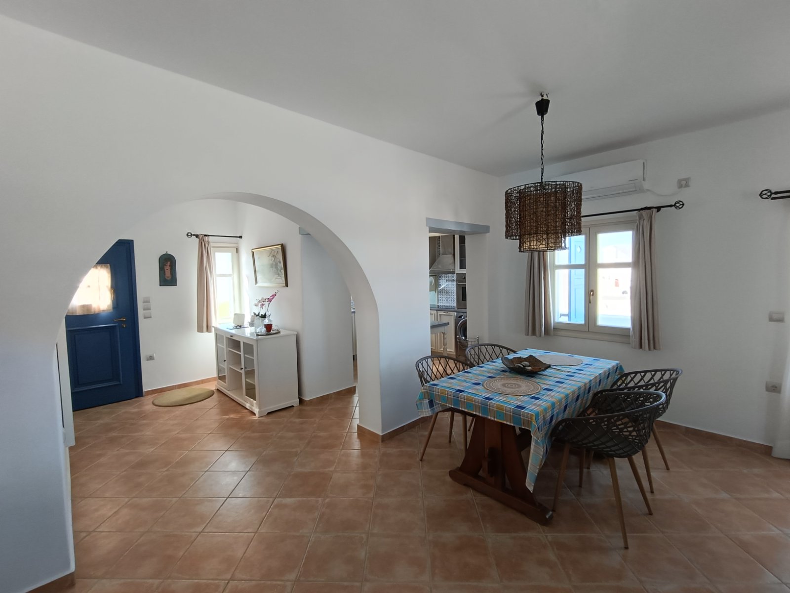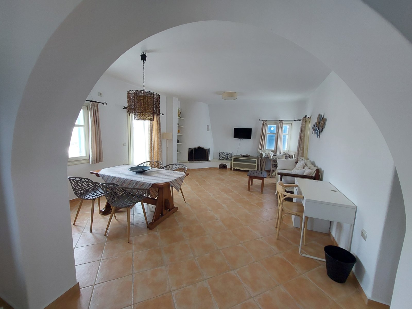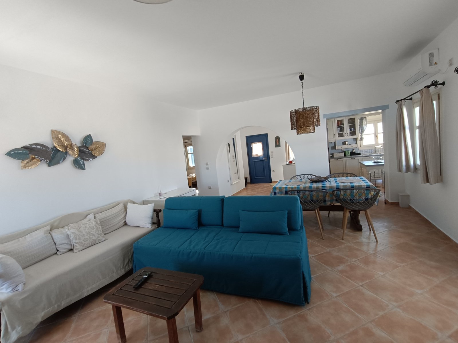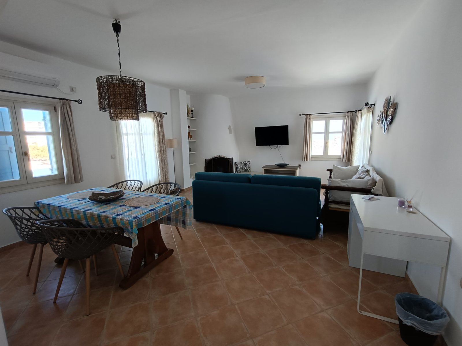 Το σπίτι μας αποτελείται από δύο υπνοδωμάτια, το ένα με διπλό κρεβάτι και το άλλο με δύο μονά κρεβάτια, ένα μπάνιο, ένα μεγάλο σαλόνι και τραπεζαρία.
