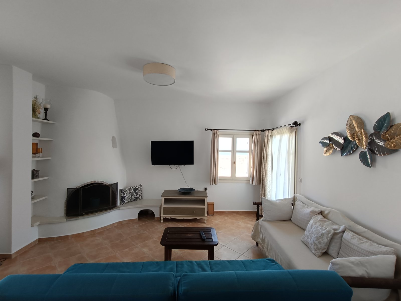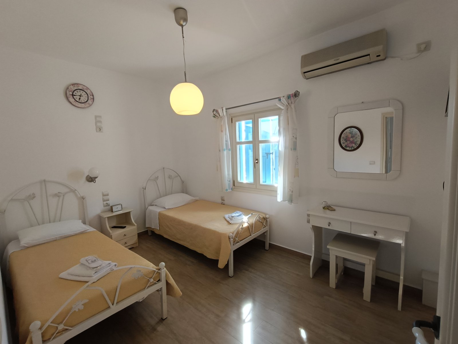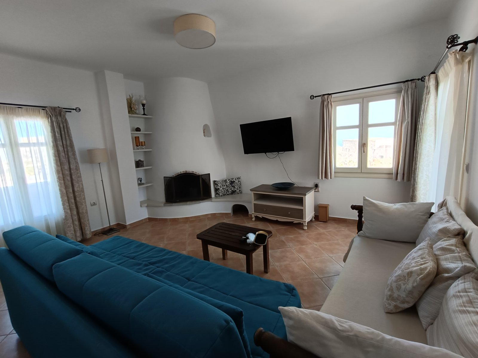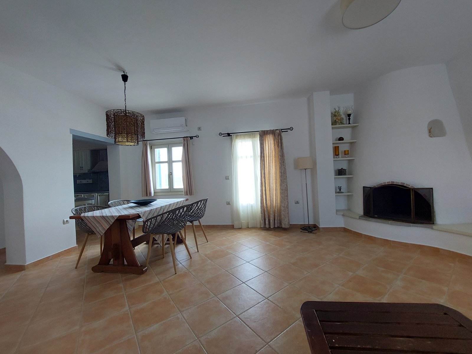 Το σπίτι μας αποτελείται από δύο υπνοδωμάτια, το ένα με διπλό κρεβάτι και το άλλο με δύο μονά κρεβάτια, ένα μπάνιο, ένα μεγάλο σαλόνι και τραπεζαρία.