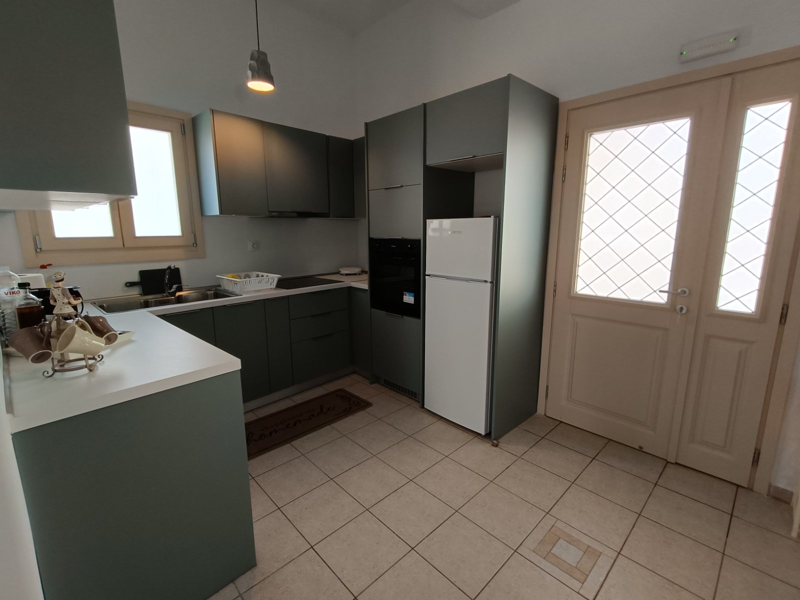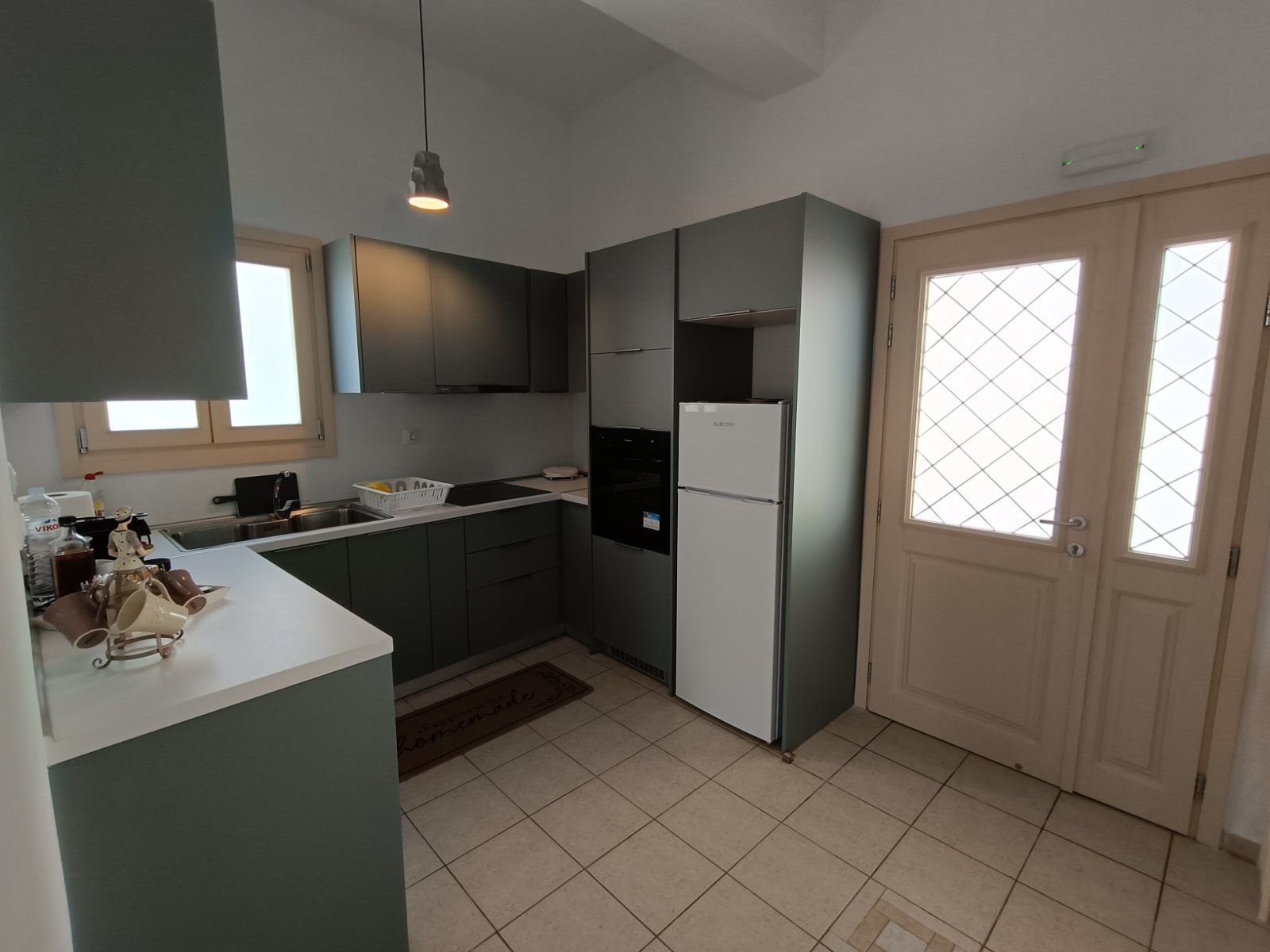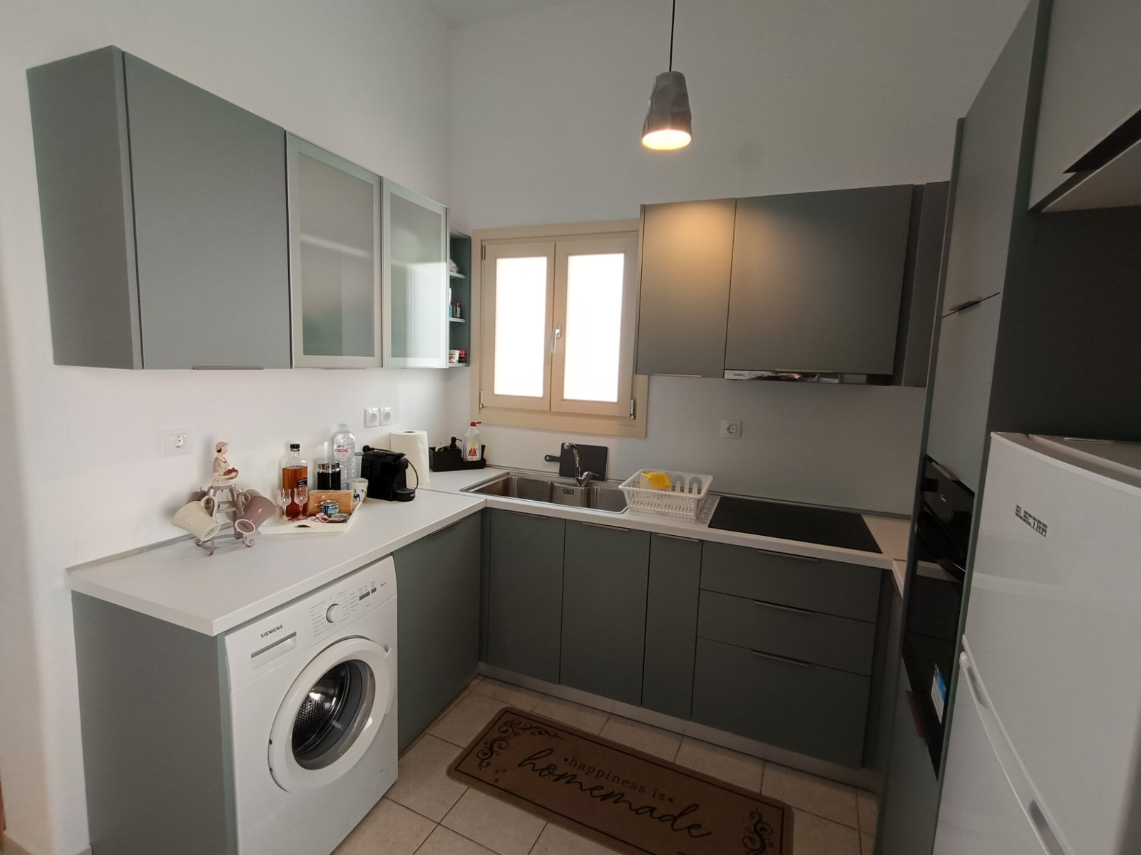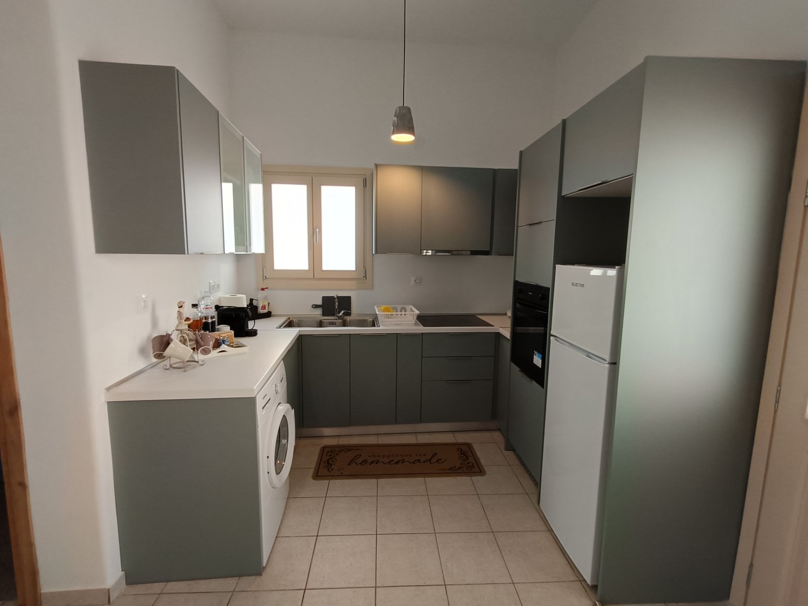 Και μια κουζίνα όπως στο σπίτι σας, που αποτελείται από φούρνο, εστίες, ψυγείο, πλυντήριο ρούχων, φούρνο μικροκυμάτων, μηχανή εσπρέσο και όλες τις μικροσυσκευές για την προετοιμασία των καθημερινών σας γευμάτων.