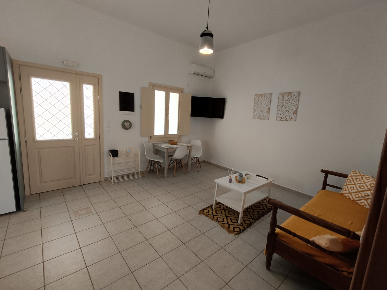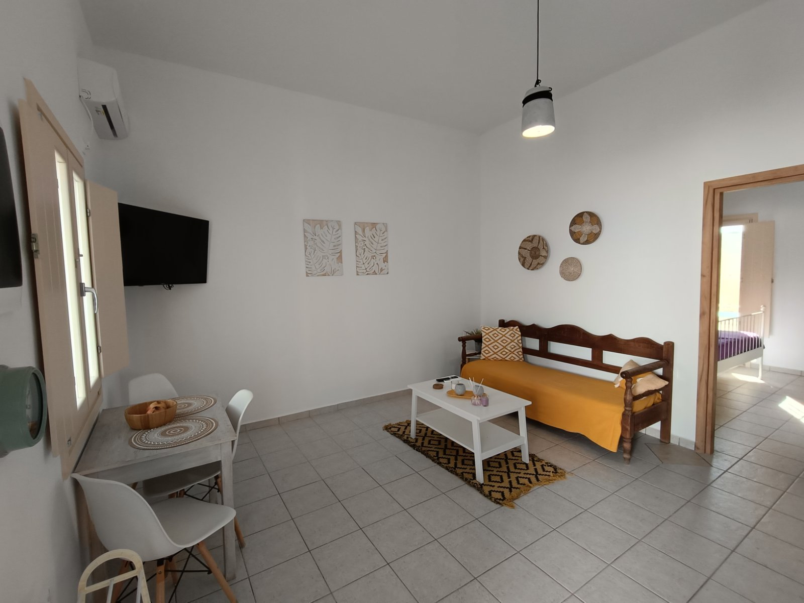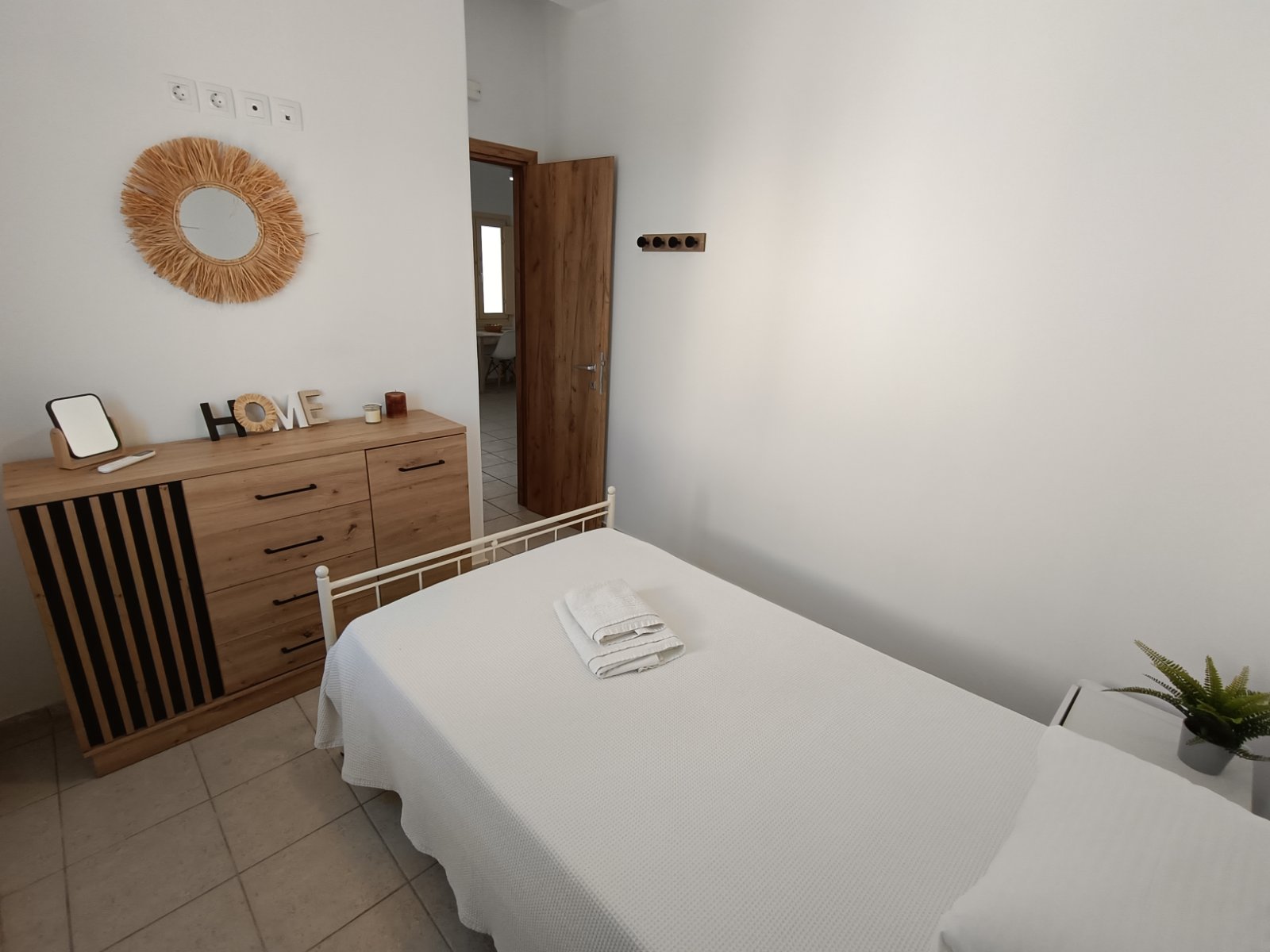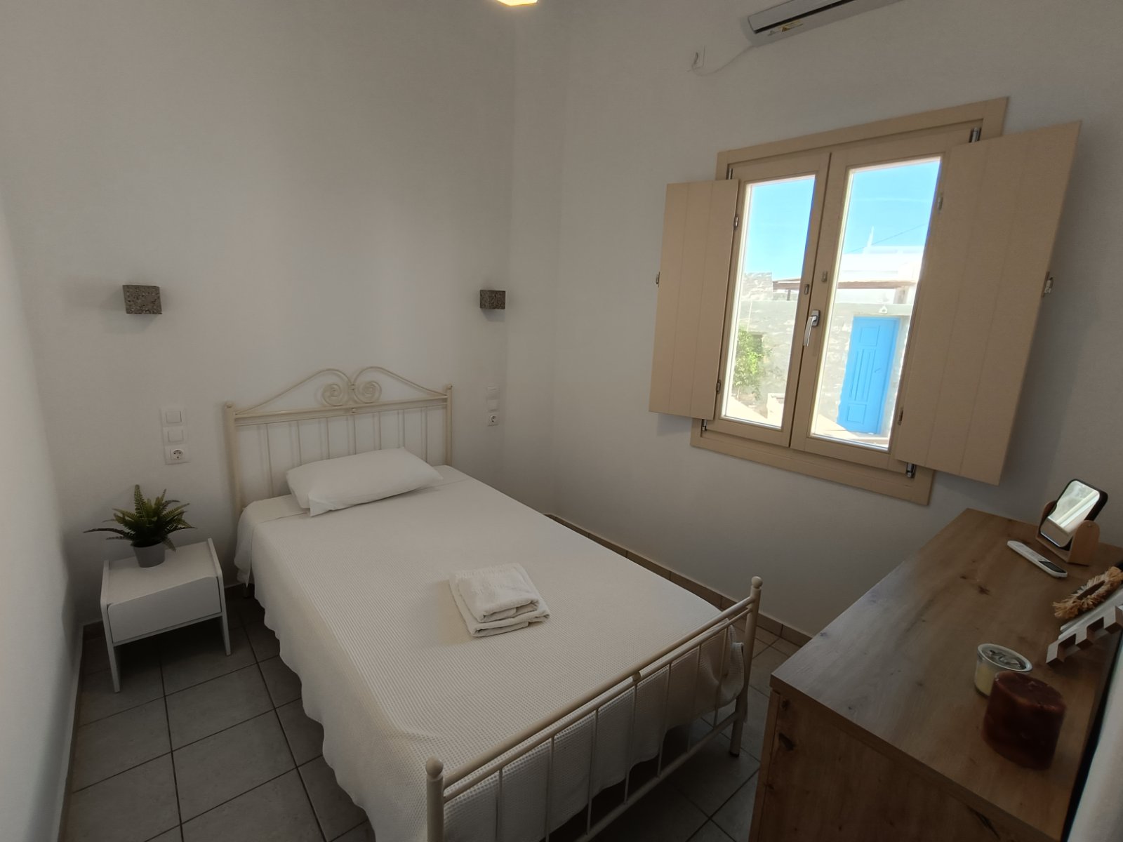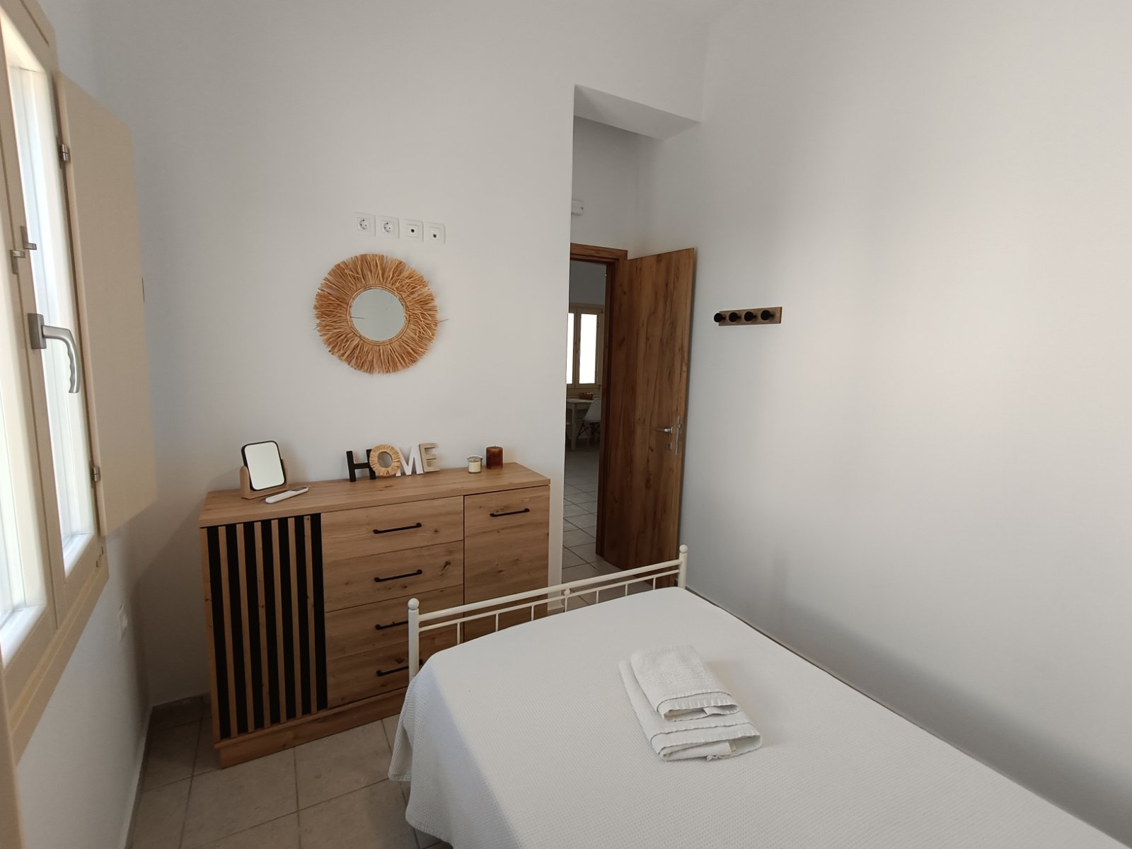 Το σπίτι μας αποτελείται από δύο υπνοδωμάτια, το ένα με διπλό κρεβάτι και το άλλο με δύο μονά κρεβάτια, ένα μπάνιο, ένα μεγάλο σαλόνι και τραπεζαρία.