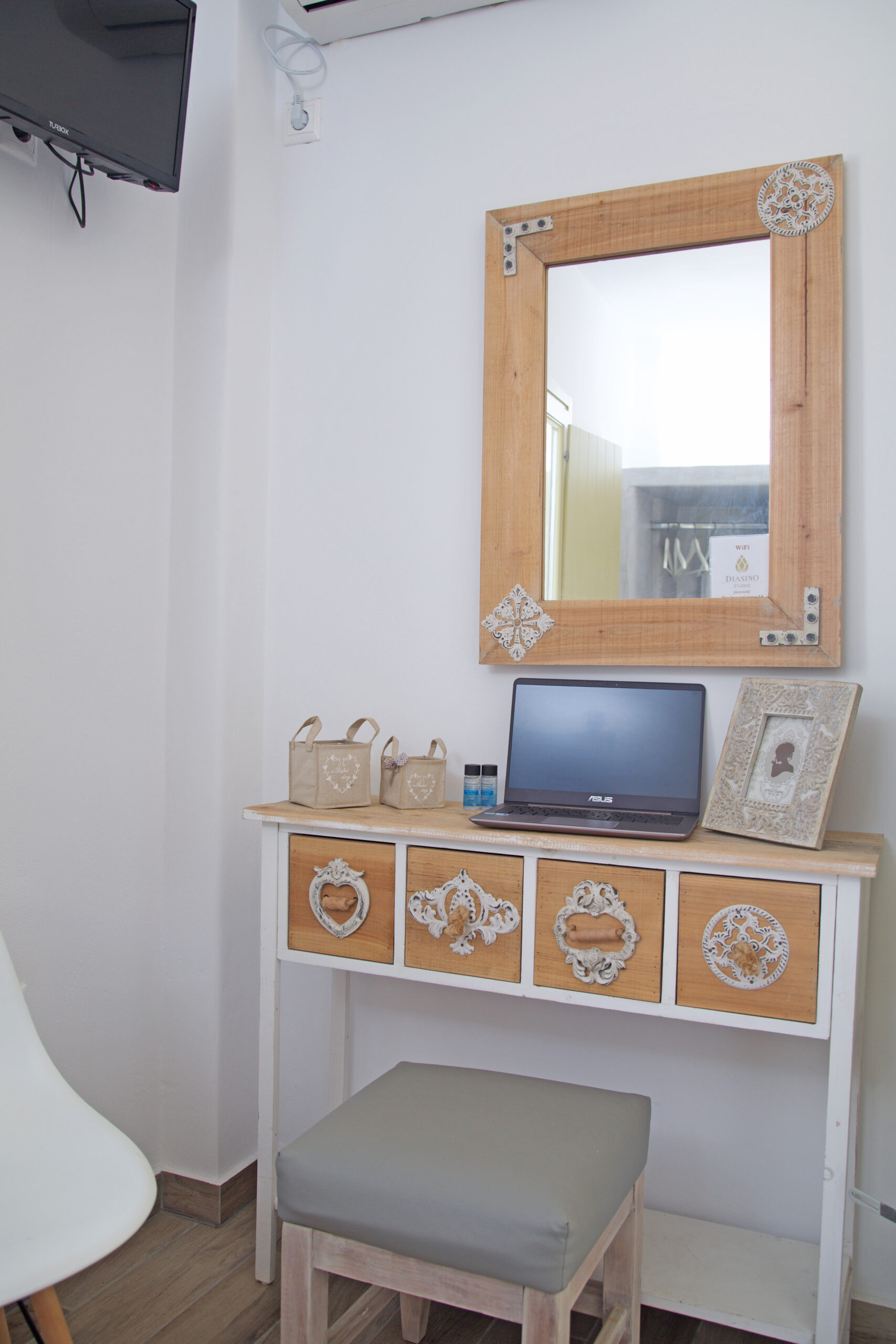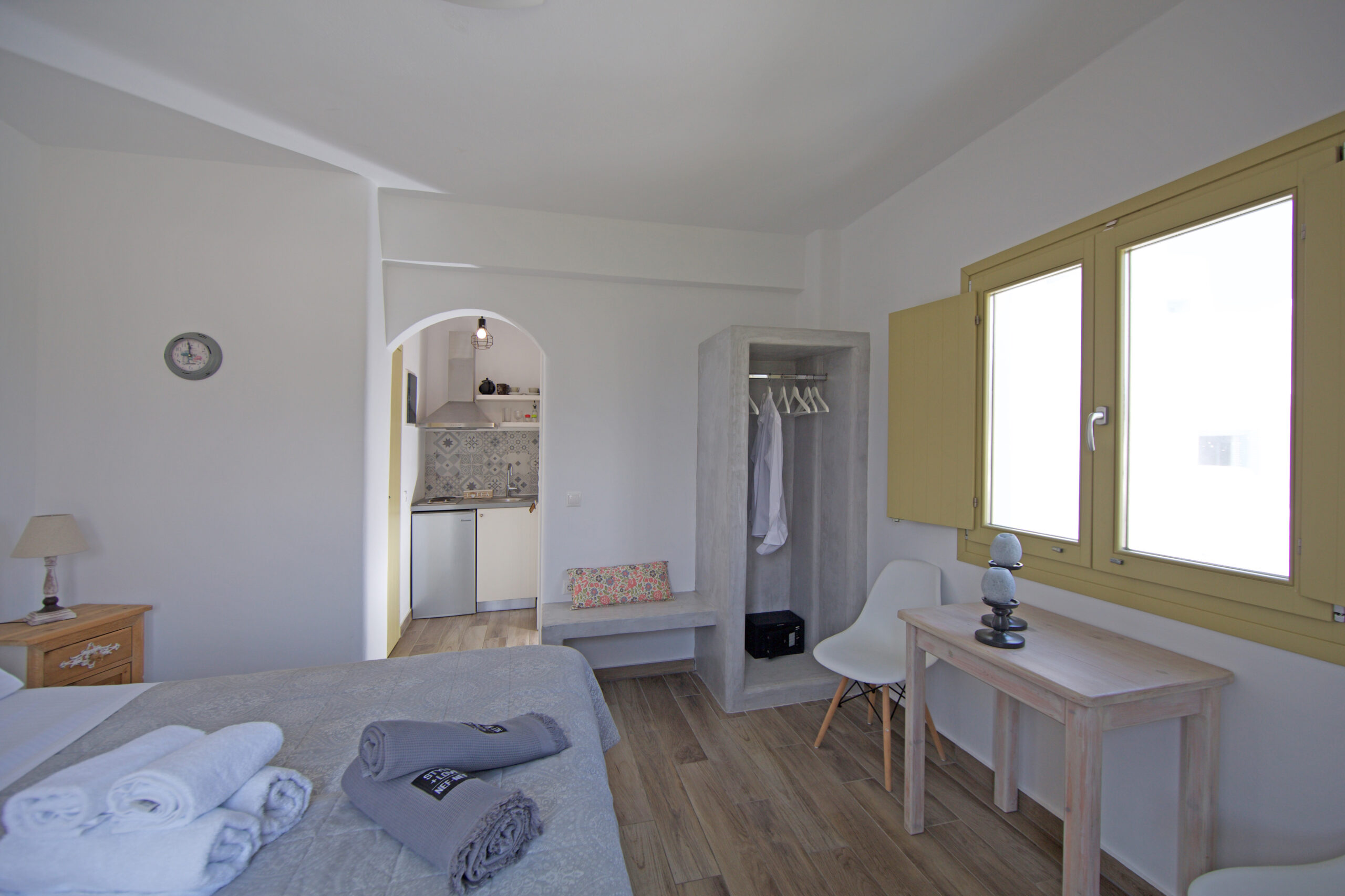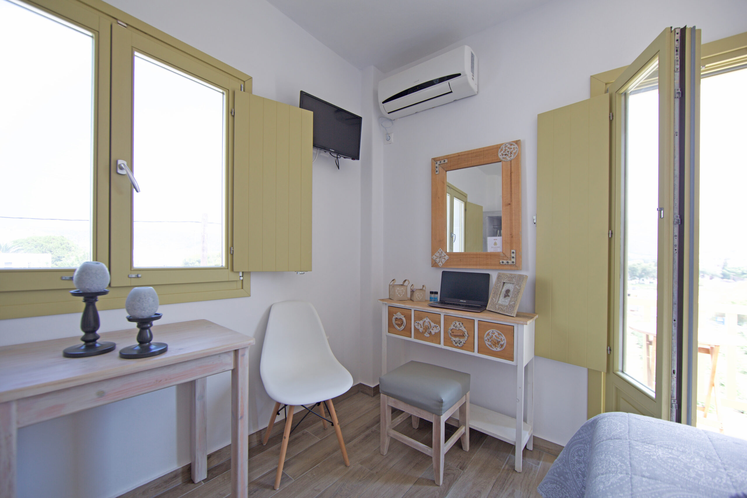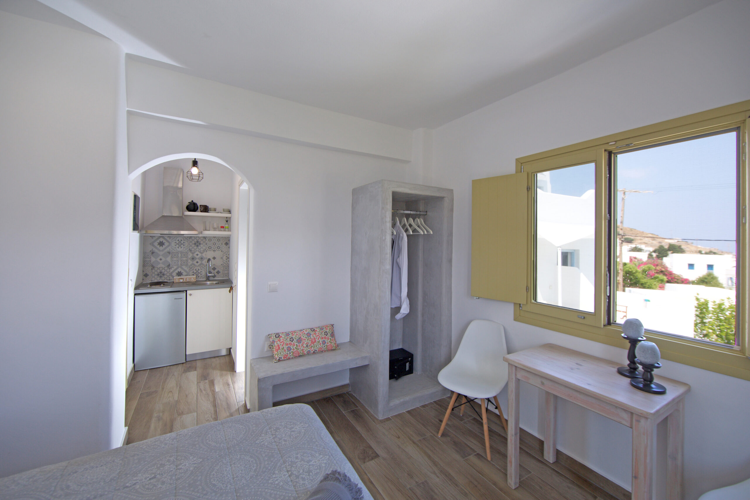 Παρέχουμε θέα στη θάλασσα (σε ορισμένα στούντιο), κλιματισμό, παντόφλες, τηλεόραση Smart με επίπεδη οθόνη, καθημερινή καθαριότητα, βεράντα με καρέκλες και τραπέζι, καφετιέρα, πετσέτες παραλίας, Wi-Fi, χρηματοκιβώτιο και προϊόντα μπάνιου.